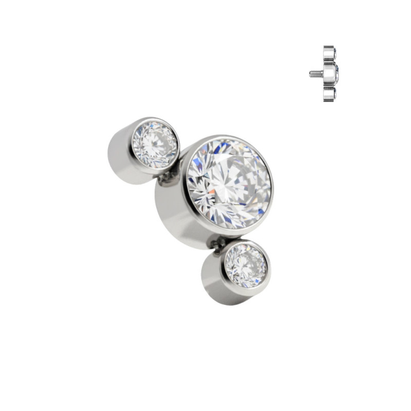 Implant Grade Titanium Internally Threaded 3 Round Bezel Set CZ Crystal Top