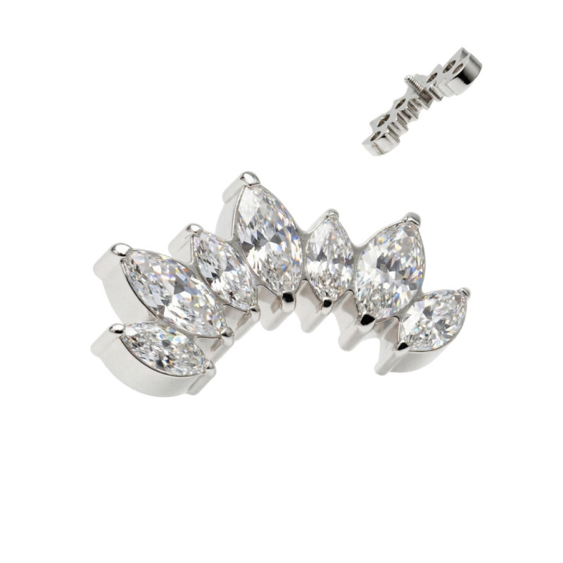 Implant Grade Titanium Internally Threaded 7 Two Different Sizes Marquise CZ Set Curve Top
