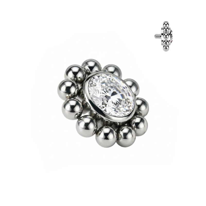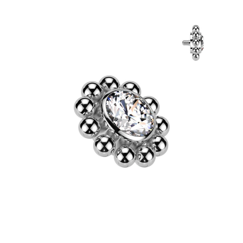 Implant Grade Titanium Internally Threaded Bezel Set CZ Center With Beaded Ball Edge Top