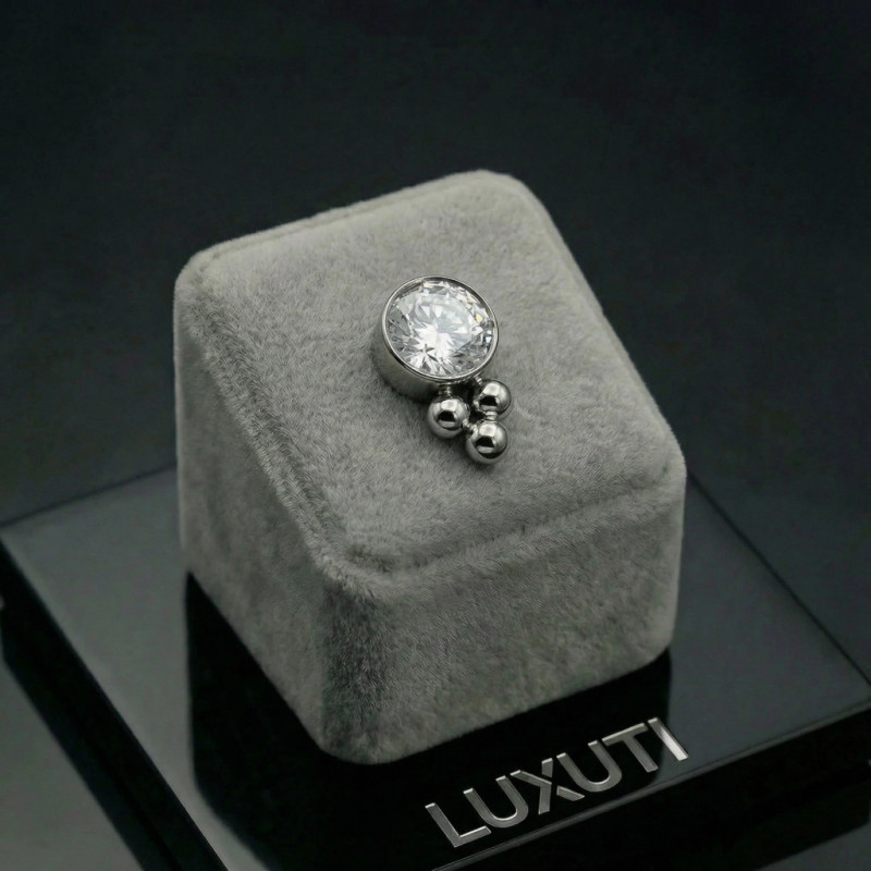 Implant Grade Titanium Internally Threaded Bezel Set Round CZ and Trinity Ball Cluster Top