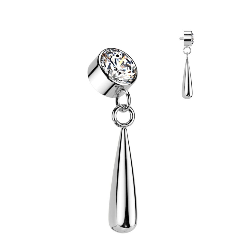 Implant Grade Titanium Internally Threaded CZ Bezel Set Top With Teardrop Dangle