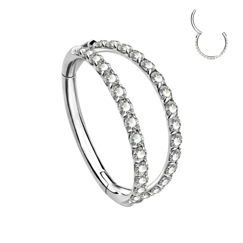 Implant Grade Titanium Hinged Segment Double Hoop Ring Lined With Outward Facing CZs