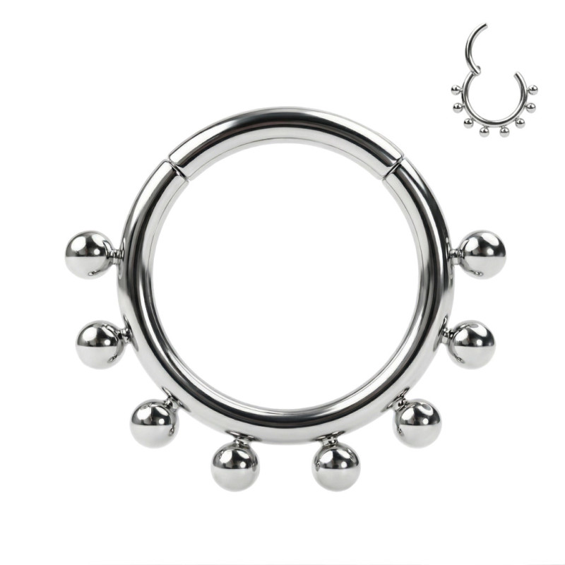 Implant Grade Titanium Hinged Segment Hoop Ring With Pyramid Cut Studded Outside