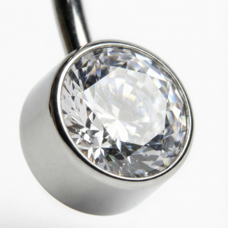 Implant Grade Titanium Internally Threaded Double Bezel Set Round Zirconia Belly Ring