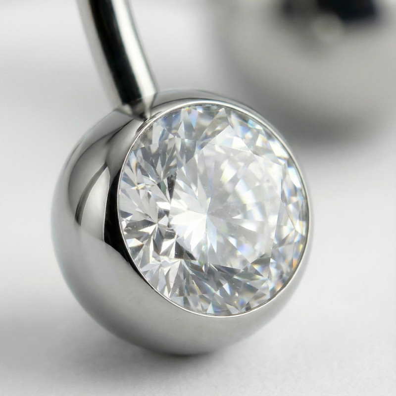 Implant Grade Titanium Internally Threaded Double Jewel Belly Button Ring