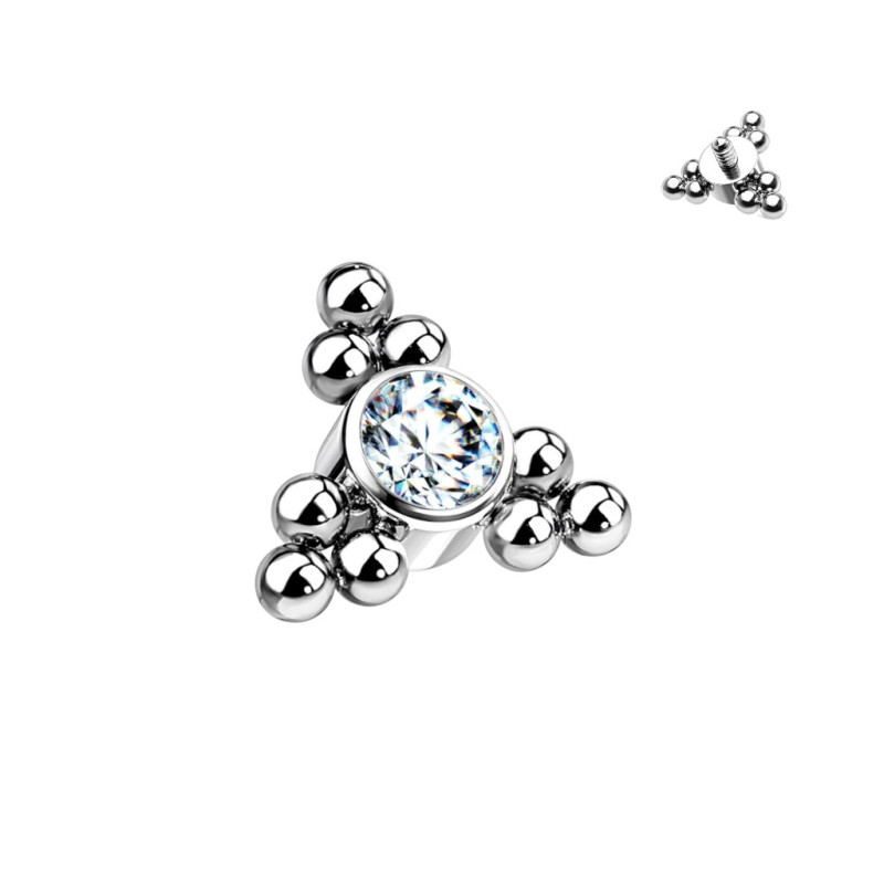 Top Centro de Circonita en Bisel y Racimos de Bolas Trinity en Titanio Grado Implante con Rosca Interna