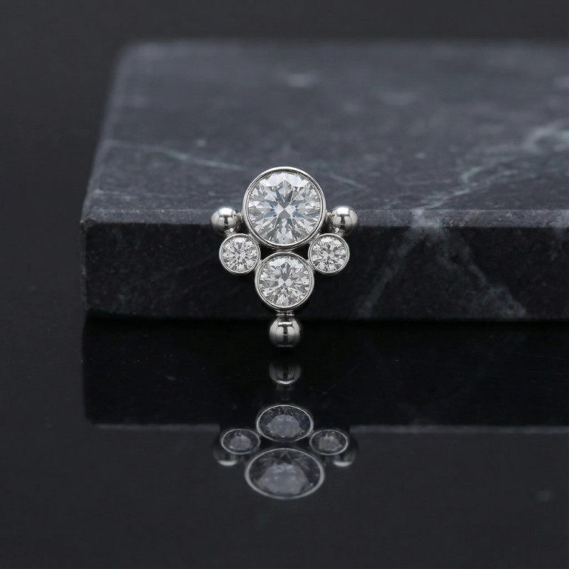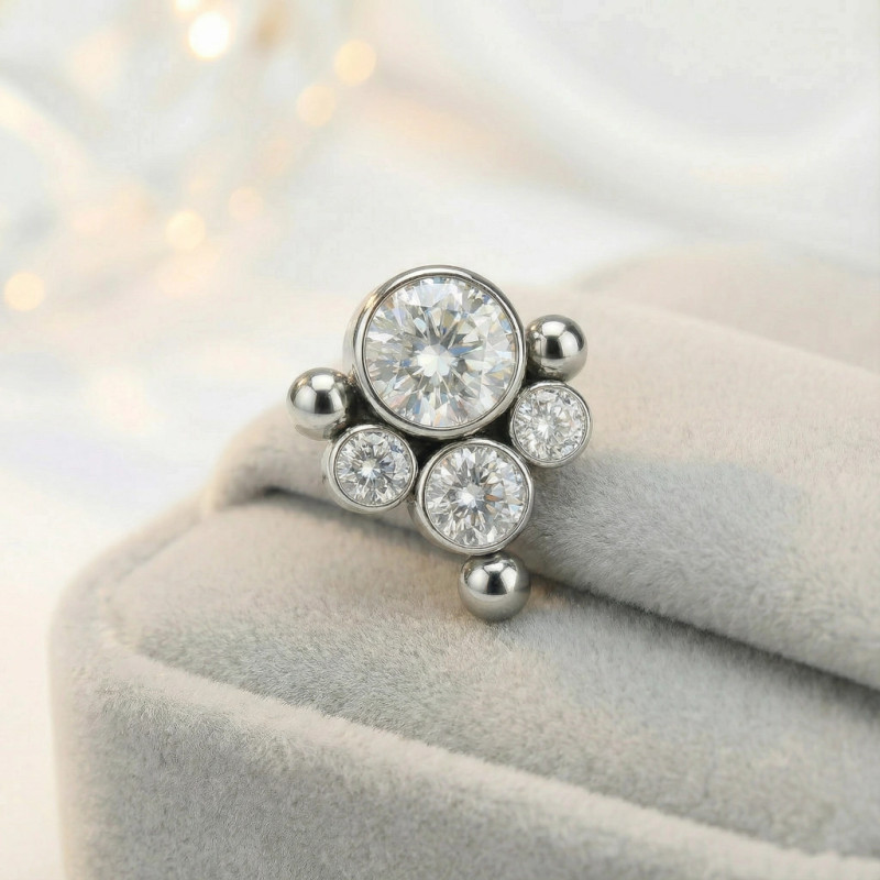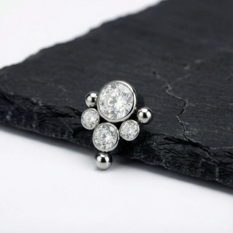 Top Centro y 3 Circonitas Redondas en Bisel y Borde de Esferas de Titanio Grado Implante con Rosca Interna