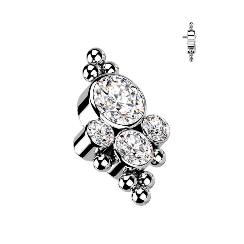 Top Cluster de 4 Circonitas en Bisel con Borde de Bolas de Titanio Grado Implante con Rosca Interna
