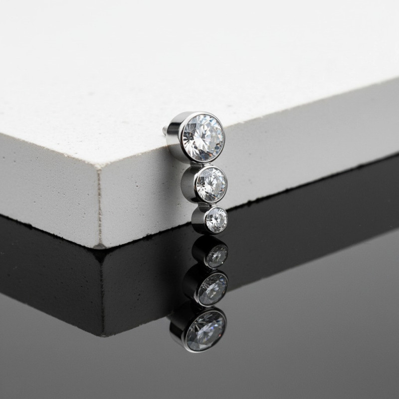 Top con 3 Circonitas Descendentes en Bisel de Titanio Grado Implante con Rosca Interna