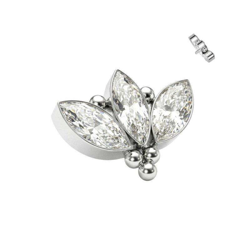 Top Racimo de 3 Esferas y Circonitas Marquise en Bisel de Titanio Grado Implante con Rosca Interna