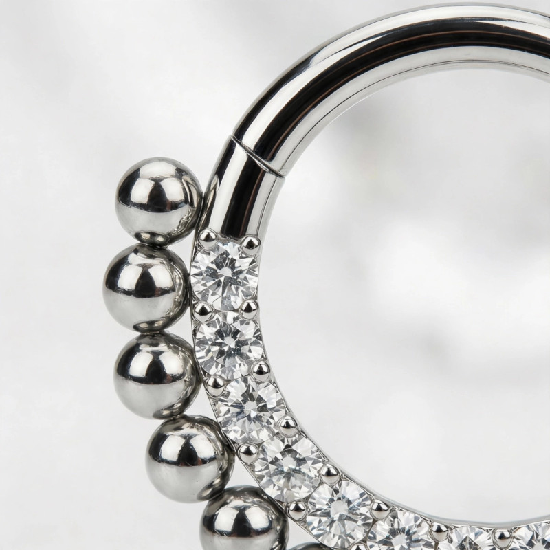 5. Aro con Bisagra de Titanio Grado Implante con Pavé de Circonitas y Bolas