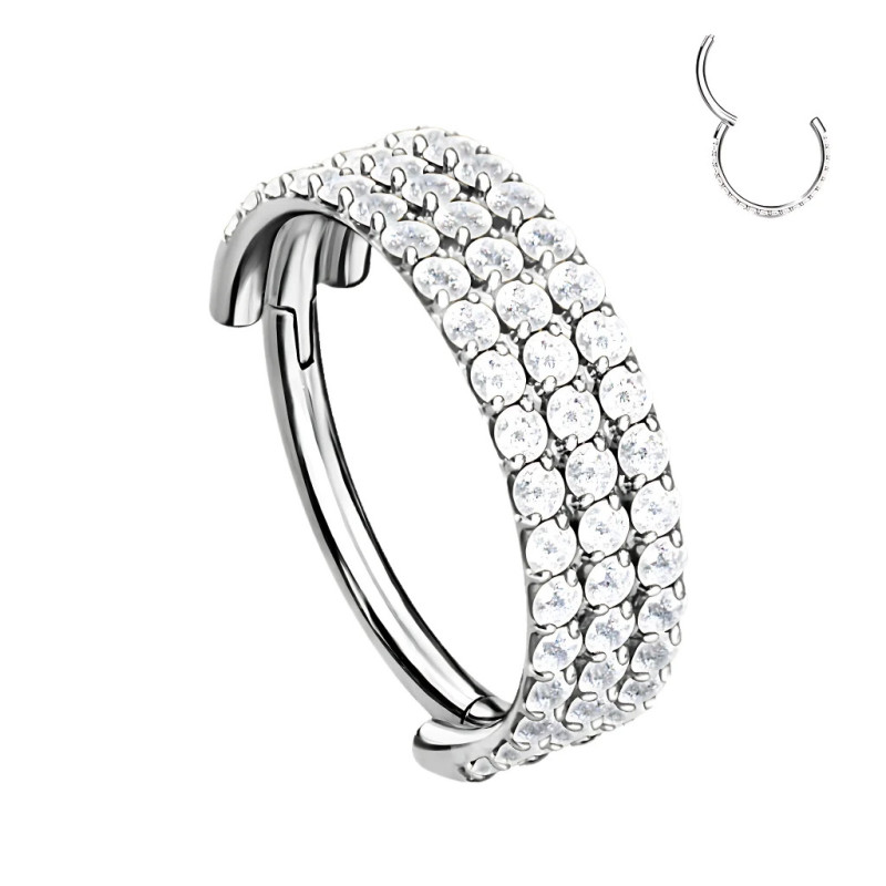 Aro con Bisagra de Titanio Grado Implante y Triple Hilera de Pavé Exterior de Circonitas