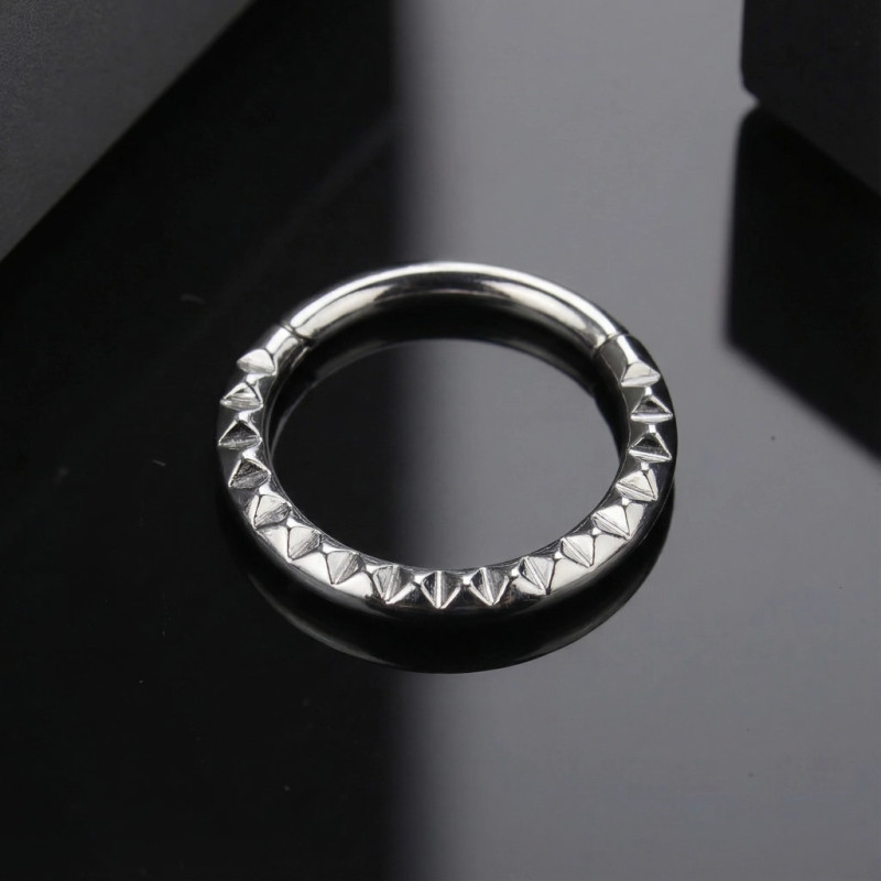 5. Aro de Titanio Grado Implantable con Bisagra y Frontal de Tachuelas de Corte Piramidal