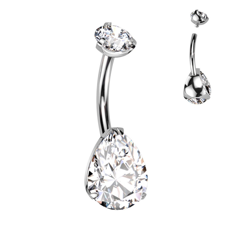 Joya para Ombligo con Pera y Top de Circonitas en Garras y Rosca Interna de Titanio Grado Implante