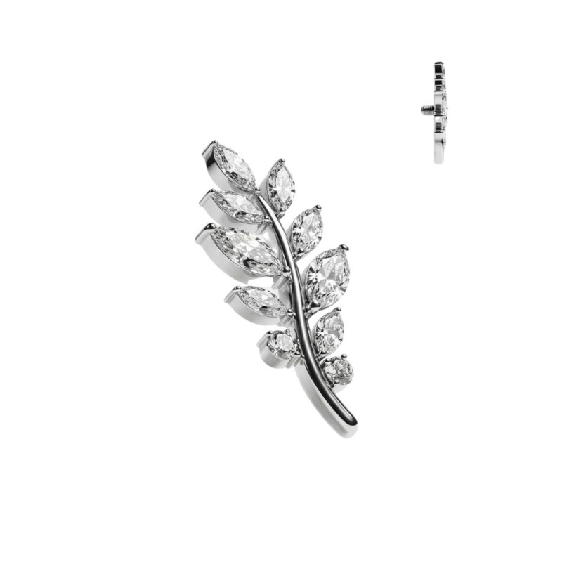 Top de Titânio Grau Implante com Rosca Interna com Pedras Marquise de Zircônia em Forma de Folha de Oliva