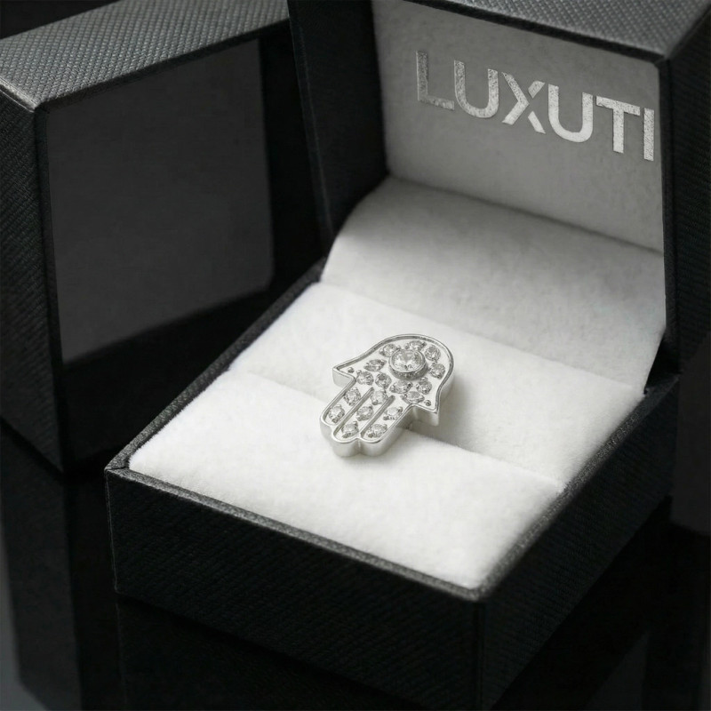 Top Hamsa de Titânio Grau Implante com Pavê de Zircônias e Rosca Interna