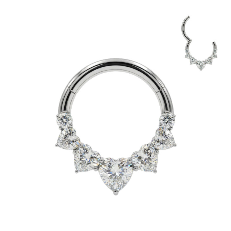 Argola com Dobradiça em Titânio Grau Implante com 5 Corações em Zircónia e 2 Zircónias Redondas