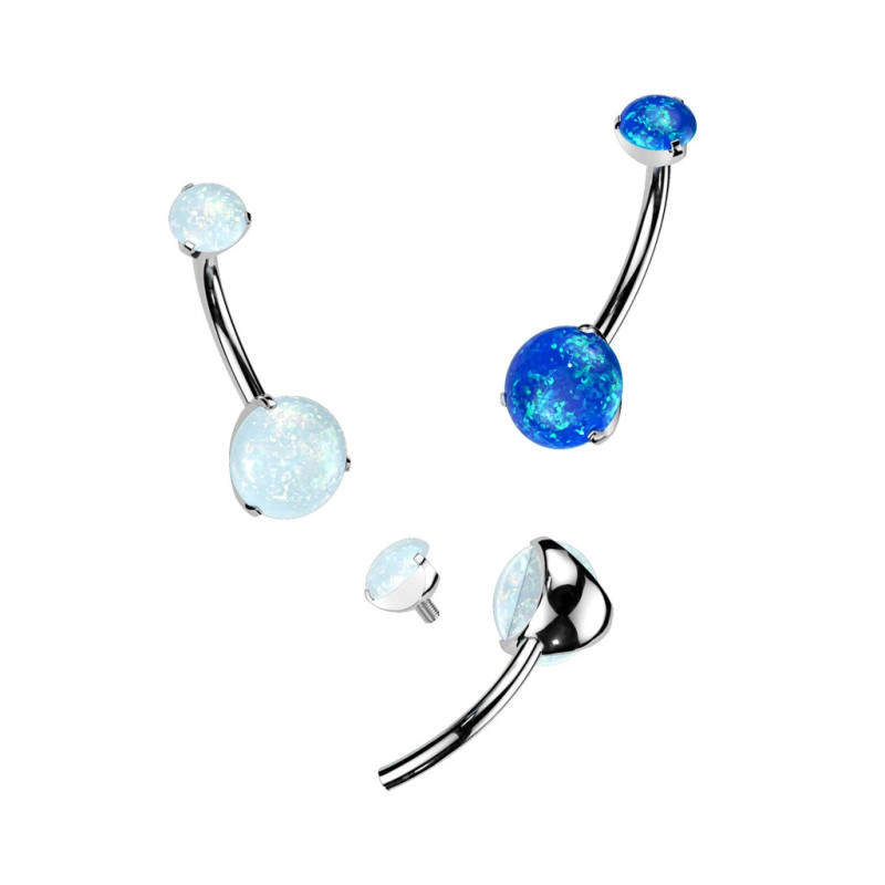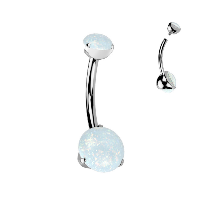 Joia de Umbigo com Opala Redonda em Garras e Rosca Interna de Titânio Grau Implante